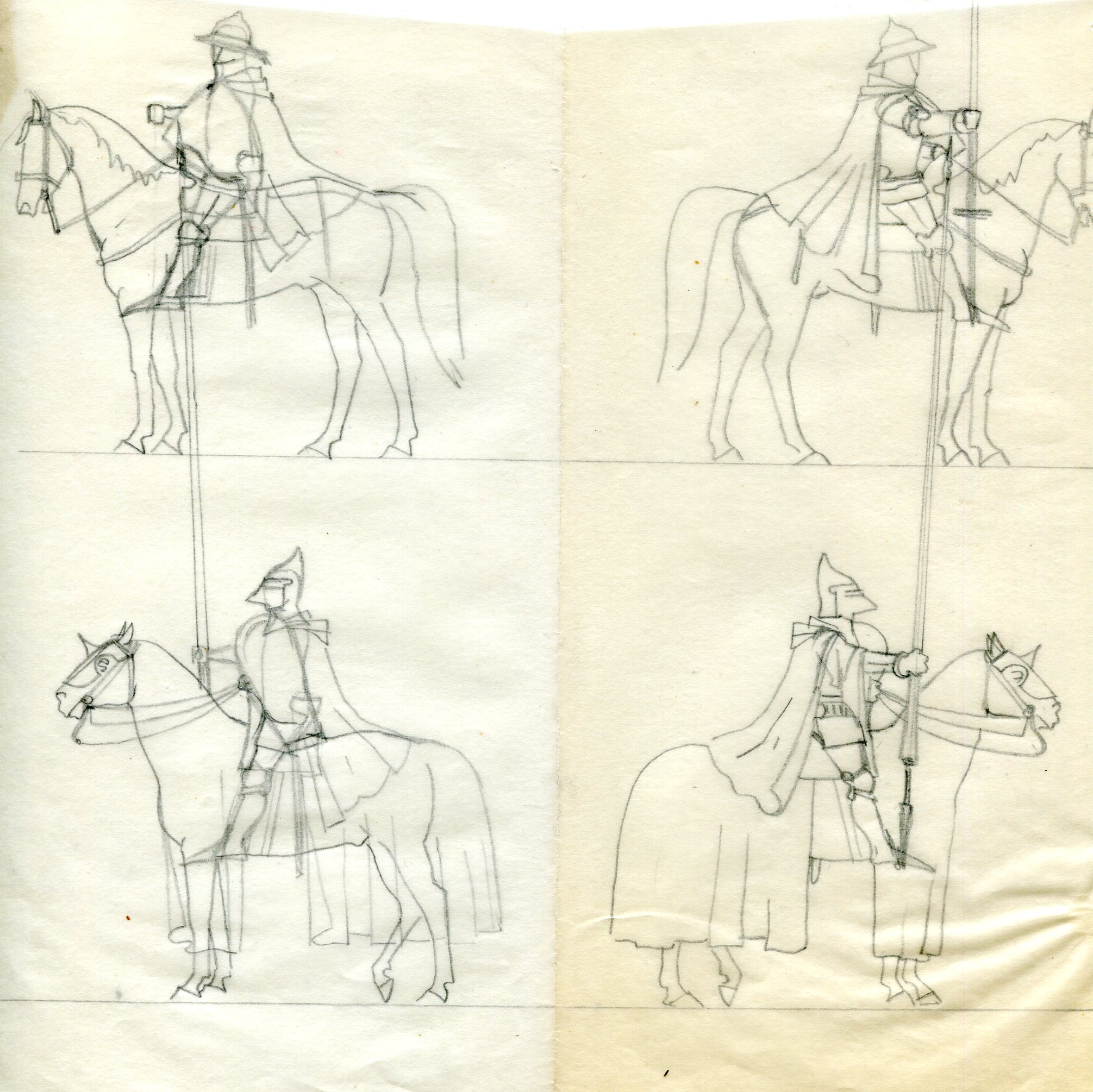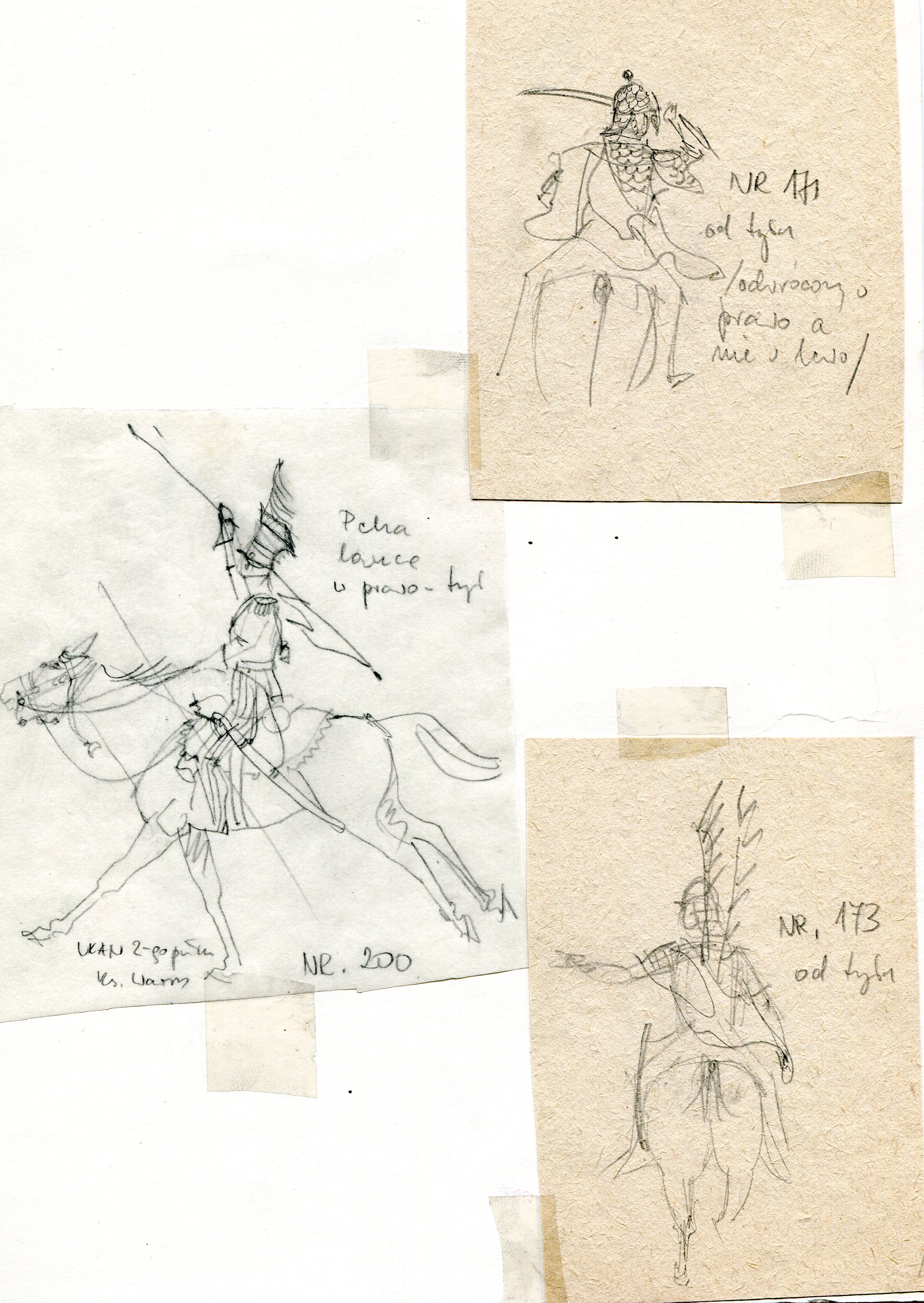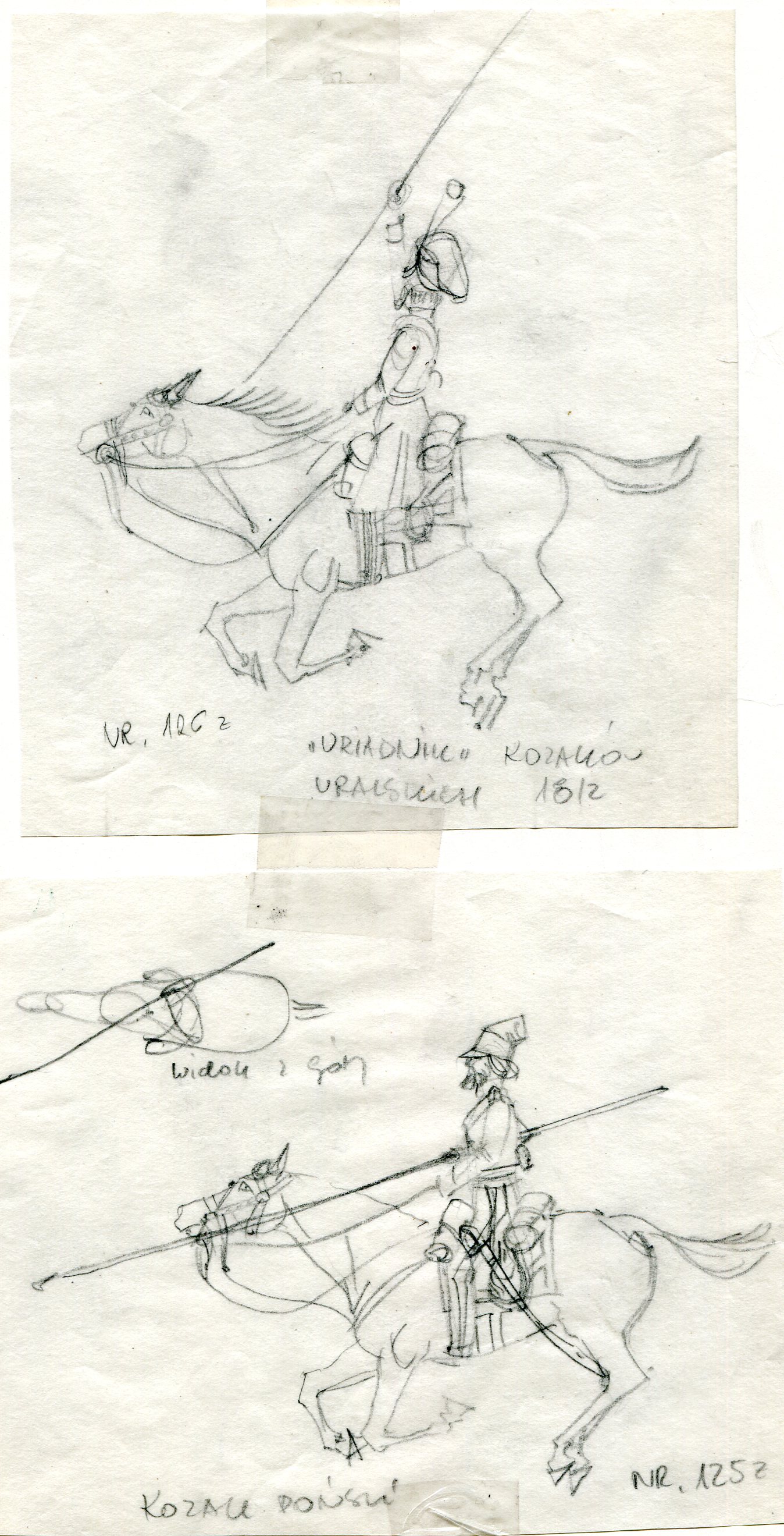 Oficyna Cynowa „PZ” legitymowała się bardzo bogatą ofertą figurkową. W tym znaczną jej część stanowiły figury konne to jest komplety składające się z jeźdźca i konia. Konny jest zawsze niezaprzeczalną atrakcją dla kolekcjonerów i znawców figury historycznej. Pamiętam też scenę rodzajową z karczmy, gdzie bodaj jacyś napoleońscy żołnierze wdają się w pojedynek, który ma miejsce w jakiejś przypadkowej gospodzie. Nie wiem dlaczego ta scena przywodzi mi film Ridley’a Scott’a „Pojedynek” z 1977 roku. Wiem,że otoczenie, główni adwersarze – wszystko to czyni klimat, buduje atmosferę. Scenka była przedstawiona w ujęciu dynamicznym i układała się w swoistą dioramę. Dioramy stawały się wówczas modne. Oficyna Cynowa „PZ” była w tej dziedzinie jedną z pierwszych. Ofertę otwierały wyobrażenia figur zbrojnych z X wieku, a zamykały ją przedstawienia z początku XX stulecia. Mnie szczególnie obchodziła wcale bogata kolekcja rycerstwa i zbrojnych z czasu Grunwaldu. Byli też rycerze zakonni. Miłośnicy XVII wiecznej wojskowości mogli delektować się pancernymi, husarią i tureckimi przeciwnikami. Piotr Górkiewicz wykonał tym samym tytaniczną pracę i to nie tylko w materii tworzenia samej rzeźby. Ona była namacalnym finałem – bo figurą – procesu przygotowawczego prowadzącego do poznania realiów czasu przedstawienia kreacji figury historycznej jej kształtu i formy z zachowaniem detali właściwych danej epoce. Wszystko co zostało stworzone w Oficynie ujmowano w katalogach. W tekście i galerii przedstawiono okładki i detale z katalogów tematycznych jakie przygotowano dla odbiorców. Twórcą tych katalogów był mój przyjaciel Andrzej Klein. W tekście i galerii pomieszczono jego projekty w rozmaitych stadiach ich powstawania. To jest dokument nie do przecenienia. Niewielu jest gitarzystów wirtuozów, których można poznać po wysłuchaniu pierwszych dźwięków wydobytych z ich instrumentów. Tak się rzecz ma w przypadku Andrzeja Kleina. On nie mógłby rysować dla podziemnej prasy w okresie okupacji. Jego kreskę natychmiast byłby rozpoznał pierwszy konfident, nie wspominając o niemieckich analitykach i znawcach sztuki. Wiem, że się powtarzam, ale to naprawdę mowa o istotnych cechach składających się na niepowtarzalność Oficyny Cynowej „PZ”.