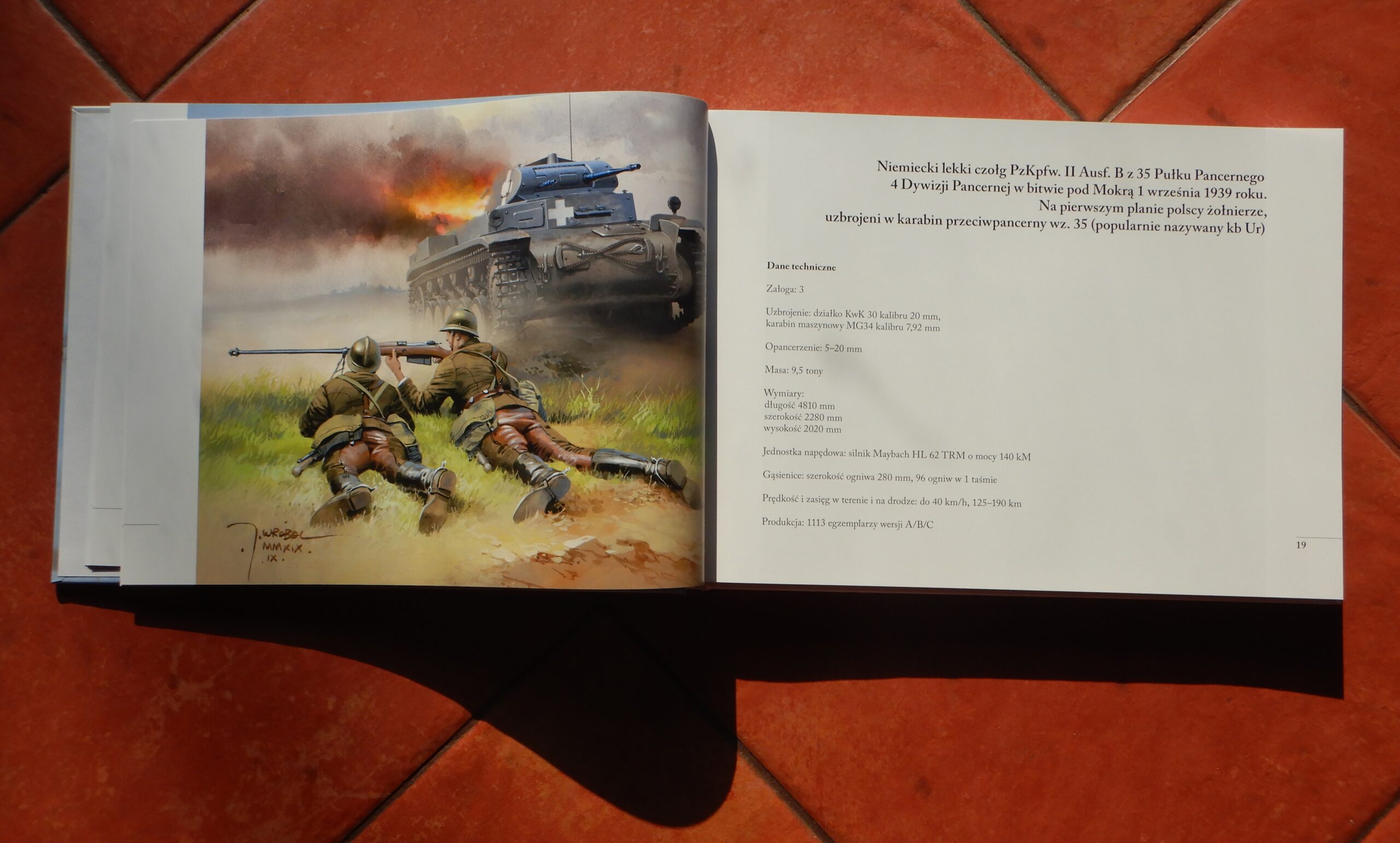 Moja fascynacja pancerzem- rozumianym jako skuteczna ochrona przed wrażą penetracją- datuje się od wczesnego dzieciństwa, kiedy to dzięki dziadkowi Wojciechowi zwróciłem baczniejszą uwagę na owady, szczególnie na chrząszcze. Nadal mam świeży obraz rohatyńca, który opadnięty przez kilkadziesiąt mrówek niczym niezrażony podążał swoją drogą, chroniony przez chitynowy pancerz. Zapamiętałem też pojedynki, które w starciu pancerza z mnogością napastników kończyły się zwycięstwem przewagi liczebnej atakujących nad jakością ochrony. I tak mi zostało. Sygnalizuję więc pojawienie się na naszym rynku książki: „II WOJNA ŚWIATOWA czas pancerza” autorstwa Jarosława Wróbla sygnowanej znakiem oficyny BELLONA. Warszawa 2024 r. .Przyroda nie znosi próżni. Ten truizm odnosi się również do naszego rynku wydawniczego. Jako pasjonat książkowy ze smutkiem zauważyłem fakt „zadyszki” jakiej doznało wydawnictwo „VESPER” w kontynuacji wartościowego cyklu poświęconego naszej broni pancernej autorstwa wybitnego rysownika- malarza militariów Adama Jońcy. Jak już wspomniałem: Świat nie znosi jednak próżni. Prawa Murphy’ego są ciągle żywe. Praca Jarosława Wróbla poświęcona broni pancernej w okresie II wojny światowej została wydana w formacie książek, który zaproponował „VESPER” w swoim przerwanym -póki co – cyklu. I tu refleksja. Jestem laikiem technicznym. Lata temu przeczytałem z zainteresowaniem w jakiejś książce, że bohater powieści będąc w podróży, goniąc czas, był zmuszony do wymiany silnika w swoim amerykańskim bolidzie(naprawa trwałaby dłużej niż wymiana) Usługę wykonano w przydrożnym warsztacie. Dokonano naprawy wykorzystując silnik innej marki amerykańskiej. Stało się to dzięki unifikacji wymiarów silników konkurujących ze sobą koncernów. To są plusy podstawowej unifikacji. Na bibliotecznej półce – dzięki takiemu samemu formatowi mają szansę zagościć książki z tej samej tematyki i to w jako takim szyku. Jarosława Wróbla autora ilustracji w przedmiotowym albumie nie ma chyba potrzeby przedstawiać miłośnikom broni i barwy. W „Czasie pancerza” zaprezentowano 110 barwnych ilustracji z przedstawieniami broni pancernej. Czołgi i pojazdy pancerne zostały pokazane z malarskim zacięciem, przy zachowaniu skrupulatnego realizmu dla precyzyjnego odwzorowania szczegółów i proporcji. Autor ilustracji nie zapomniał też o specyfice malowania i oznakowania broni nie tylko z uwzględnieniem państw walczących, pór roku ale i zmian następujących w czasie trwania II wojny światowej. Mnogość konstrukcji pojazdów pancernych używanych przez wojska III Rzeszy znalazła swoje odzwierciedlenie w przedmiotowym tomie. Bodaj że 68 ilustracji odnosi się do sprzętu niemieckiego (część z nich obrazuje konstrukcje będące rozwinięciem sprzętu zdobycznego), o ile dobrze policzyłem. 7 ilustracji pokazuje nasz sprzęt pancerny z września 1939. Album wzbogacono o w miarę szczegółowe podpisy zawierające podstawowe dane techniczne zilustrowanych w sąsiedztwie pojazdów bojowych i liczbę wyprodukowanych egzemplarzy. Twarda, solidna okładka z uwypuklonym -wyczuwalnym pod opuszkami palców- tytułem chroni kartki z papieru dobrej jakości, który gwarantuje precyzyjne odwzorowanie pomieszczonych w tomie ilustracji. Mniemam, że pancerne misie polubią smakowanie tego albumu.