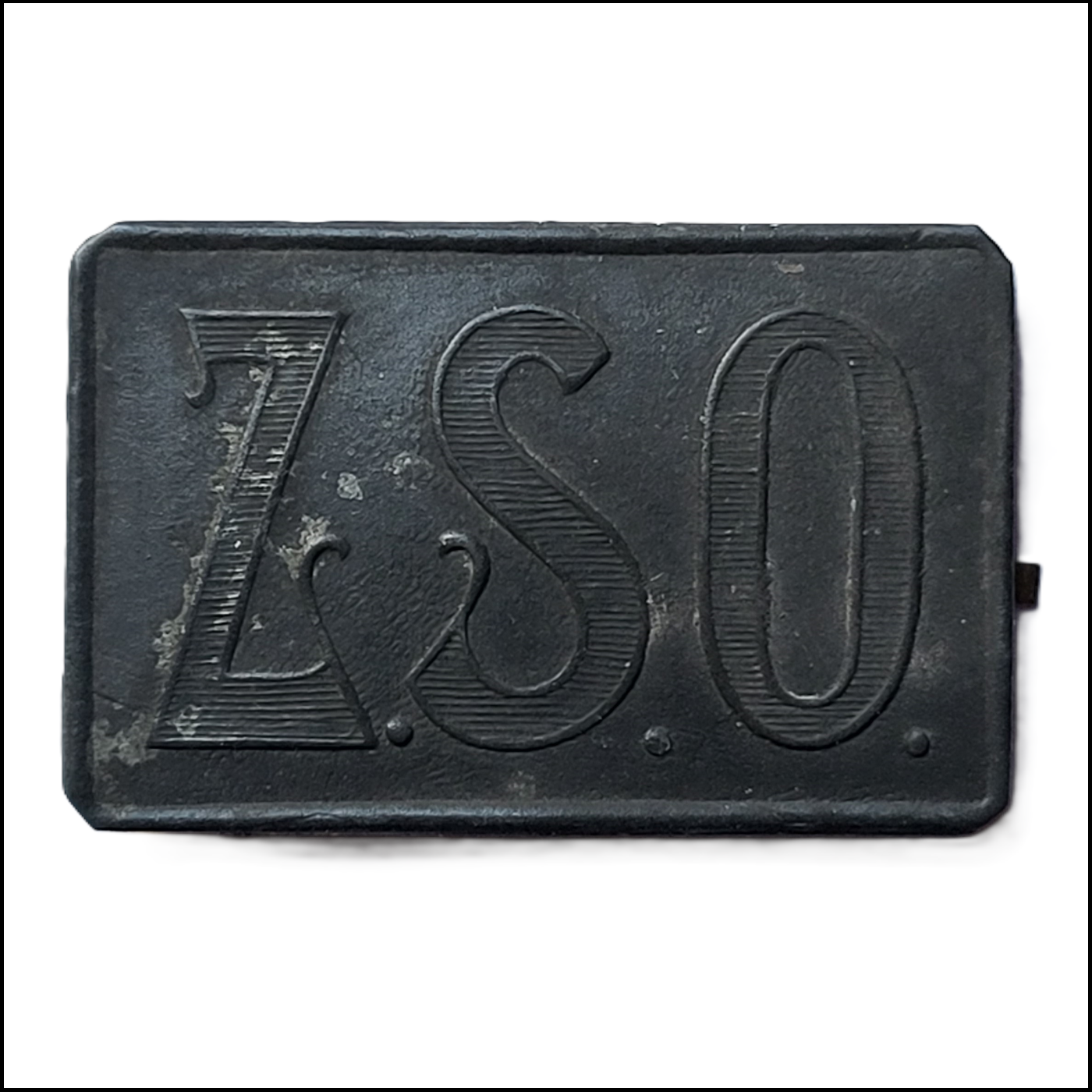 Trzecim znakiem jest prostokątny znaczek własnościowy (?) z literami „Z.S.O.” pośrodku. Na odwrocie przylutowana jest w dwóch miejscach zaginana wąska blaszka mosiężna.