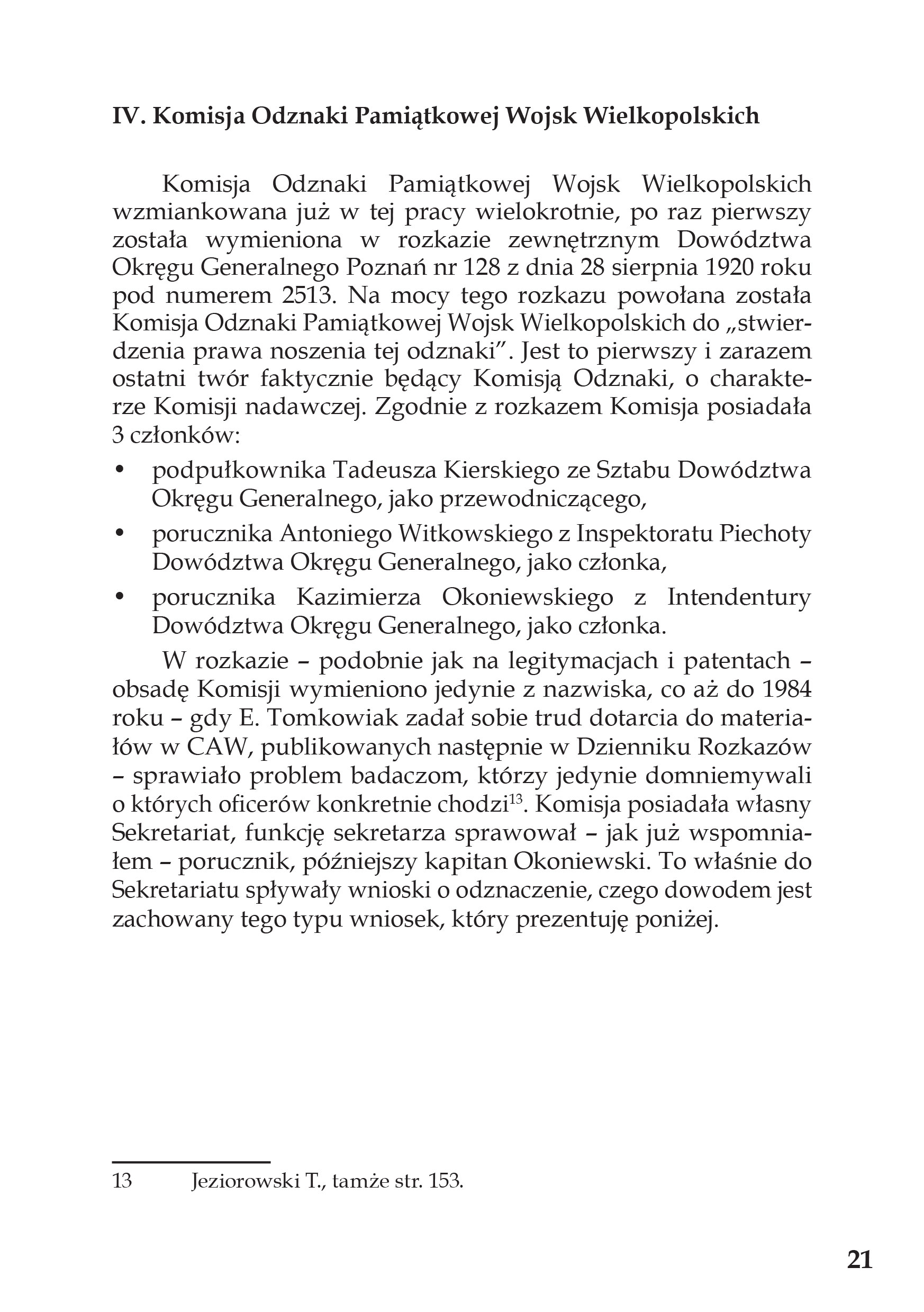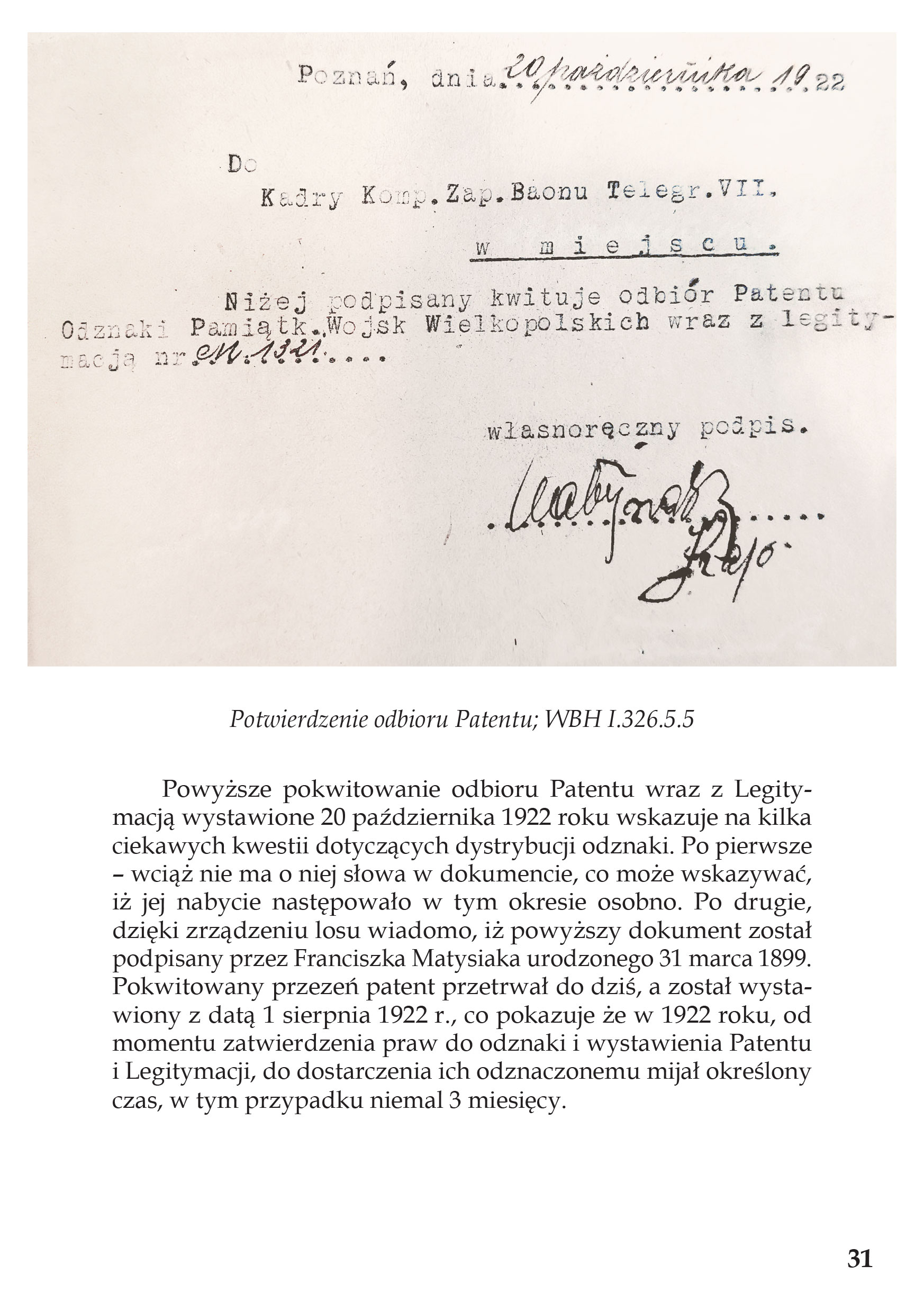 Odznaka Pamiątkowa Wojsk Wielkopolskich to do dziś jeden z najbardziej rozpoznawalnych symboli zwycięskiego Powstania Wielkopolskiego 1918-1919. Choć jej wizerunek jest znany każdemu, kto choć trochę interesuje się historią Powstania Wielkopolskiego i Wojsk Wielkopolskich, to jednak jej własna historia nie wybrzmiała dotąd w całości w literaturze tematu. Na przestrzeni lat o Odznace napisano szereg pomniejszych tekstów, była też wymieniana w szerszych monografiach dotyczących zwłaszcza umundurowania Wojsk Wielkopolskich. Nie doczekała się jednak dotychczas solidnej monografii.