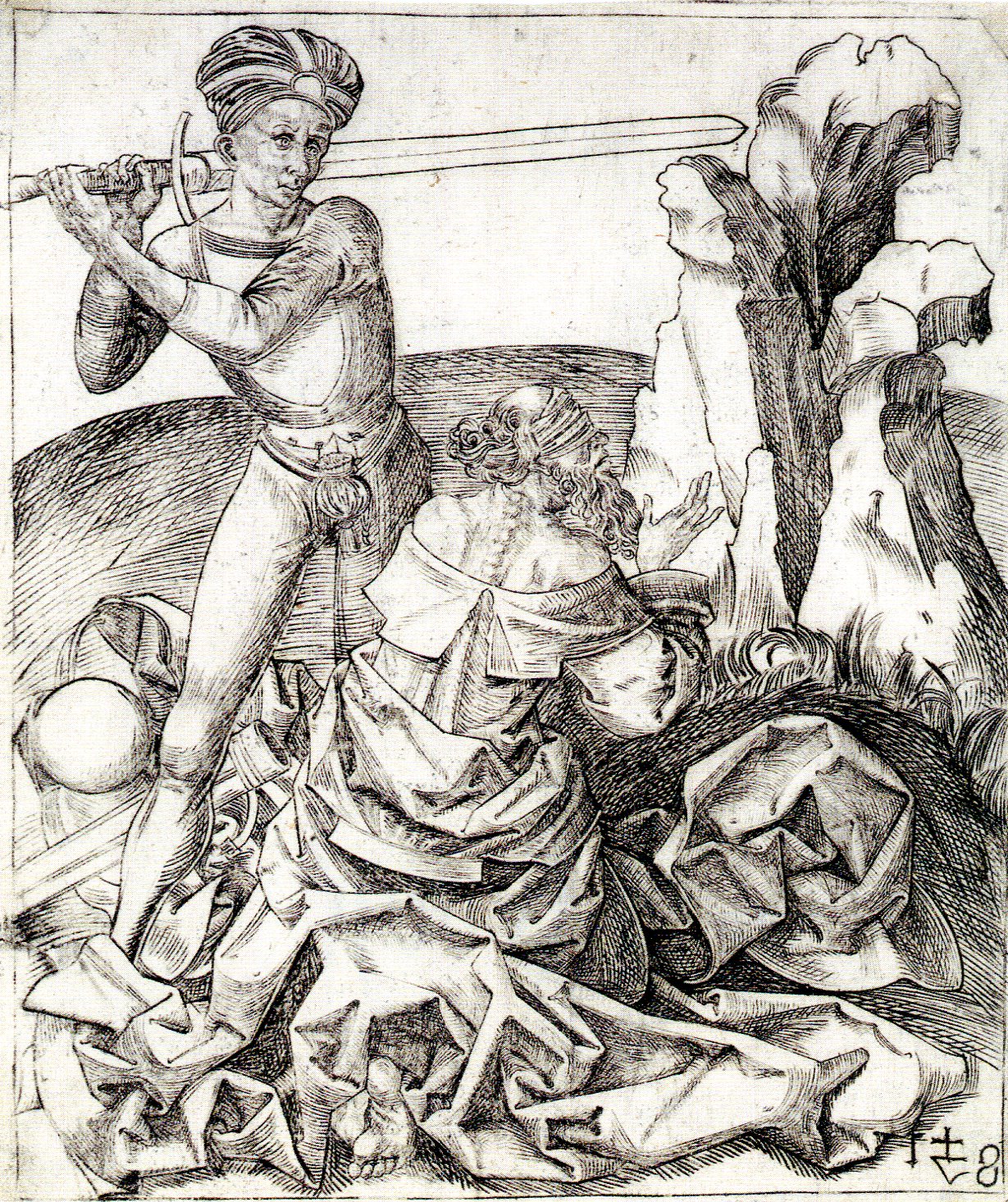 „Ścięcie świętej Katarzyny”, ” Ścięcie świętego Jakuba” wymagały, mimo że wygląda to i wybrzmiewa nieco okrutnie, odpowiednich narzędzi. W ujęciu rycinowym, mistrzowie MZ i Wit Stwosz wykazali w przedstawieniach męczeńskiej śmierci świętej (MZ) i świętego (Wit Stwosz) dużą dbałość o wierne odwzorowanie współczesnych im detali. Nie ma w nich miejsca na antykizowanie. Sztuka graficzna nakłada na parających się nią specjalistów duży reżim wykonawczy i warsztatowy. Fałszywa kreska, niezręczny ryt, niweczą bezpowrotnie włożony wkład pracy twórczej. Artyści żłobili bądź trawili matryce rysunków, które bez względu na tematykę czerpały wiernie w procesie powstawania z tego co widziały ich oczy w otaczającej rzeczywistości. Mamy więc do czynienia z tematami sprzed wieków w kreacji realiów wywodzących się z XV i XVI stulecia. Pieczołowite odwzorowanie kostiumu, uzbrojenia i innych detali musi budzić podziw i w naszym świecie. Tak więc grafiki z XV i XVI wieku stanowią w świadomości wrażliwego bronioznawcy poważne źródło w poznawaniu ówczesnego uzbrojenia.