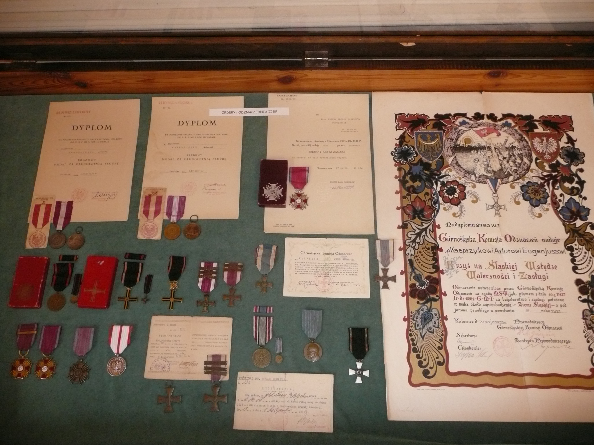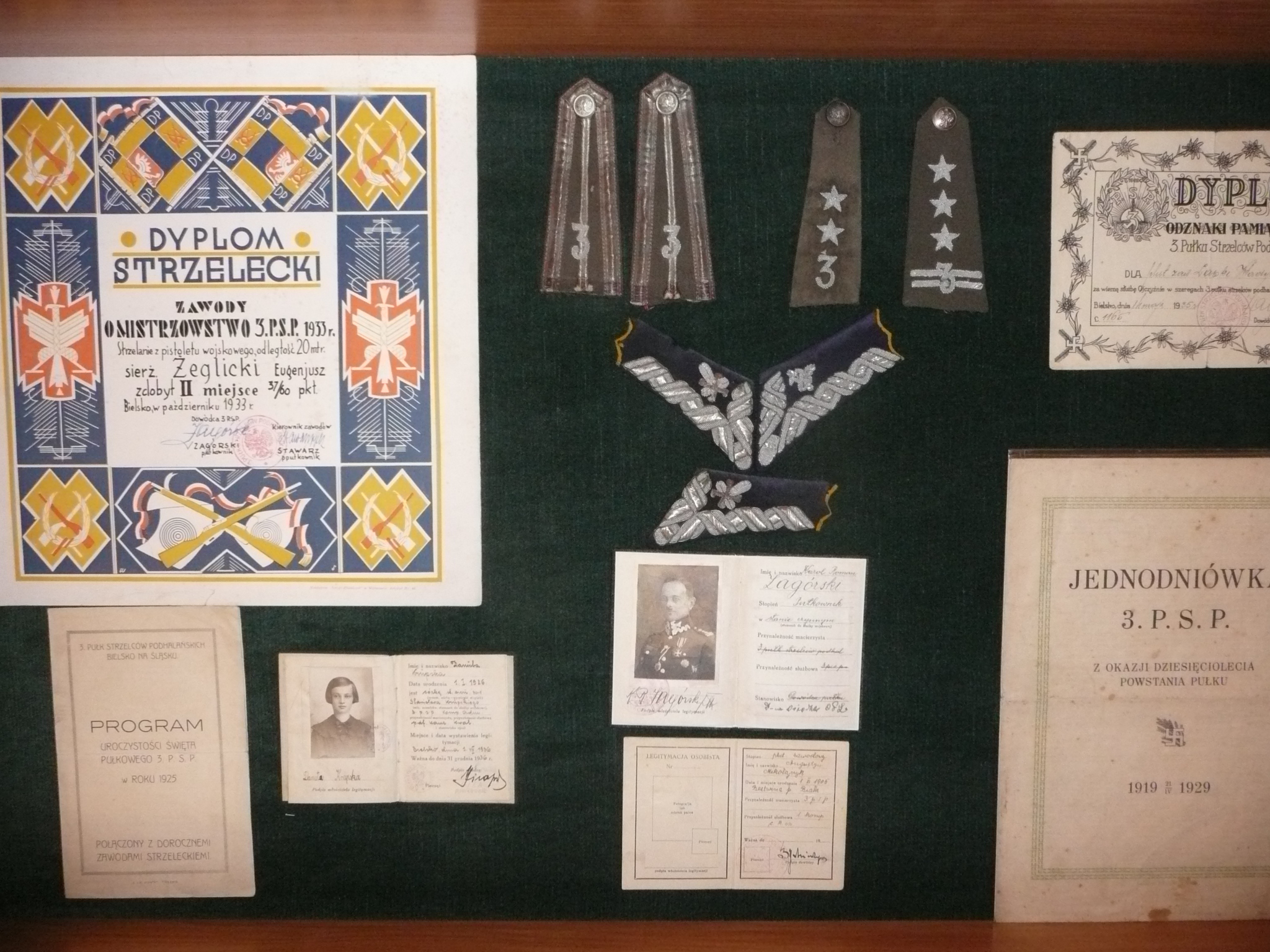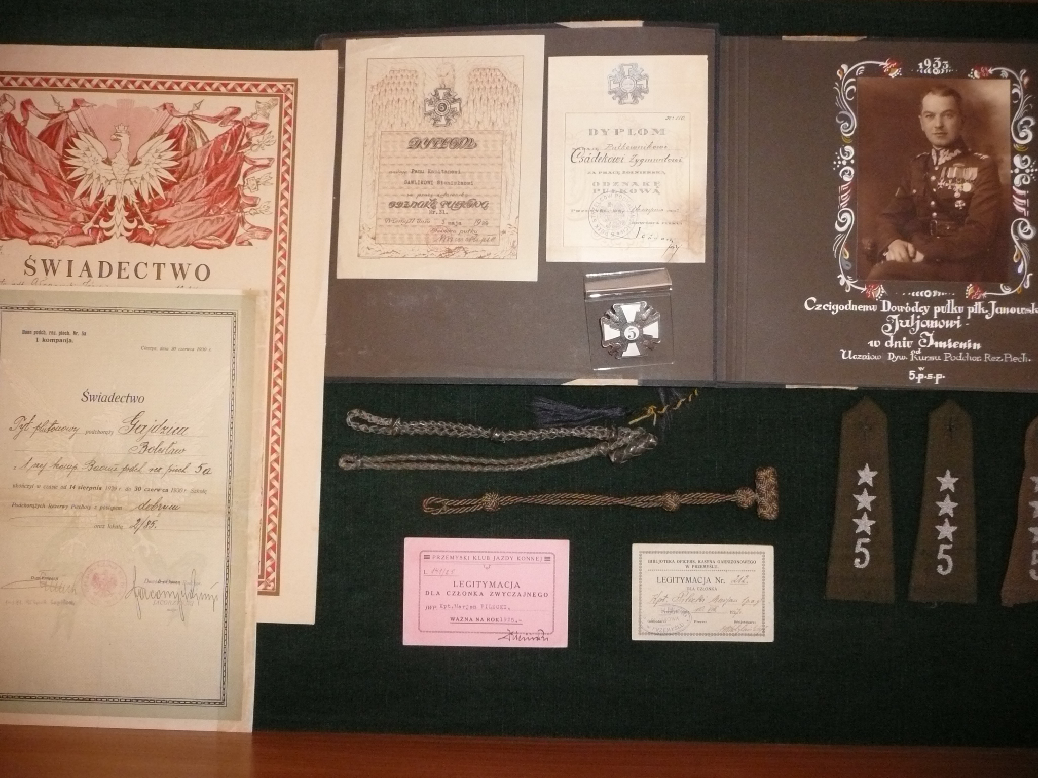 Przedstawiono również dokumenty nadań stopni wojskowych, odznaczeń, świadectw szkoleń różnych specjalności Nie pominięto sfery rodzinnej wojska – eksponując fotografie ślubne żołnierzy i oficerów.