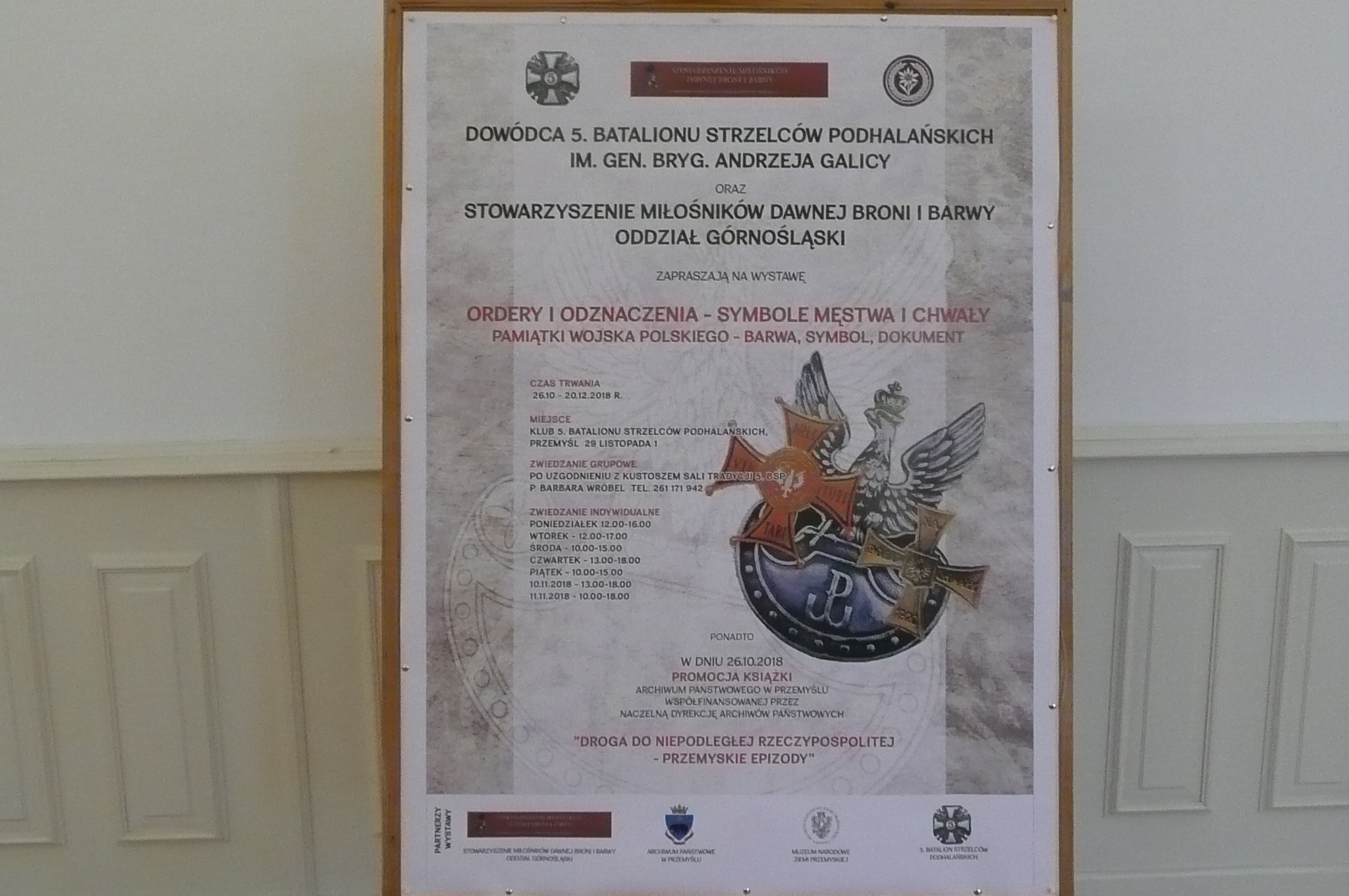 Z okazji 100 rocznicy odzyskania przez Polskę niepodległości (1918 – 2018) oraz jubileuszu 100-lecia Powstania Wojsk Podhalańskich i 25-lecia istnienia 5 Batalionu Strzelców Podhalańskich w Przemyślu – Koledzy: Wojciech Moś i Zbigniew Sedlak — z Górnośląskiego Oddziału Stowarzyszenia Miłośników Dawnej Broni i Barwy w Katowicach zorganizowali w Klubie 5 Batalionu Strzelców Podhalańskich wystawę okolicznościową pt: